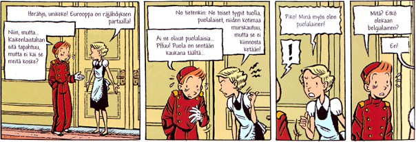 Euroopan jännittynyt tilanne heijastuu brysseliläisten takapihojen lastenleikkeihin asti. Pojanviikareiden jalkapallopeli hajoaa taustoiltaan poliittisiin nujakointeihin. Piko itse on poliittiselta maailmankuvaltaan naiivi, katolisen orpokodin kasvatti, joka albumin mittaan kyllä oppii tiedostamaan ympäröivää maailmaa. Moustic-hotelli puolestaan näyttelee tulevan sodan kannalta merkittävää roolia.