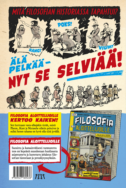 Nyt suomeksi saadaan sarjan filosofiaa käsittelevä nide. Richard Osbornen kirjoittama ja Ralph Edneyn kuvittama Filosofia aloittelijoille kertoo filosofian historiasta kaiken olennaisen komiikkaa kaihtamatta ja täsmällisyydestä tinkimättä. Vakavikkojen valtakunnaksi luultu filosofia muuttuu harvinaisen hymyilyttäväksi harrasteeksi.